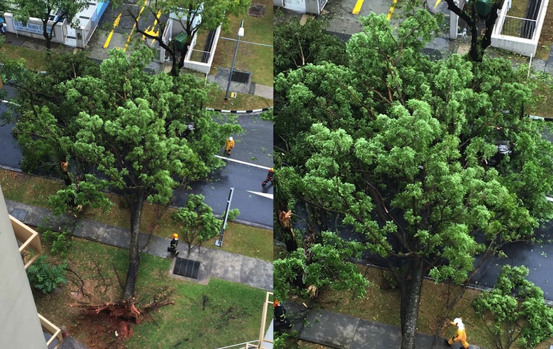 This incident happened around 4.20pm, and Singapore Civil Defence Force completed its rescue mission in about 15 minutes, using chainsaws and power saws to remove some of the tree’s branches. It is believed a man and a woman were occupants of the car, and no injuries were sustained. The car was towed and the tree removed from the road by 5.30pm, reported The Straits Times.