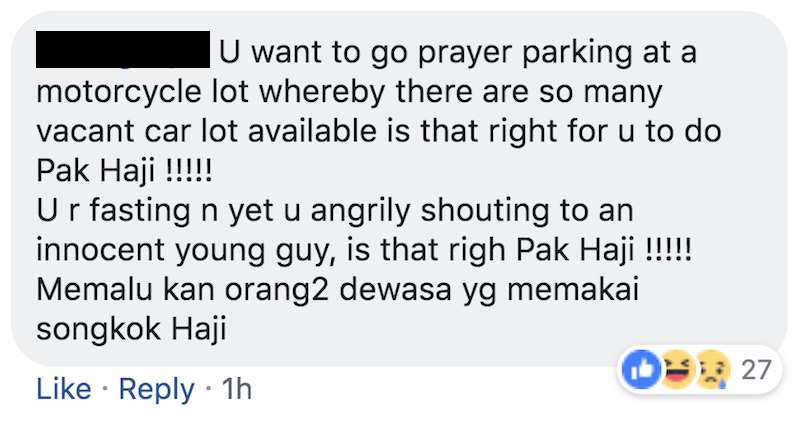 The motorcyclist then asked his wife to take pictures of the car. He explained to the camera that he had simply asked the man why he chose to park there. The bickering goes on, with the older man continued to express his anger with the way the motorcyclist was talking to him. The argument then goes into religious territory — something about the older man being angry that the motorcyclist was drinking openly despite it being the fasting hours.