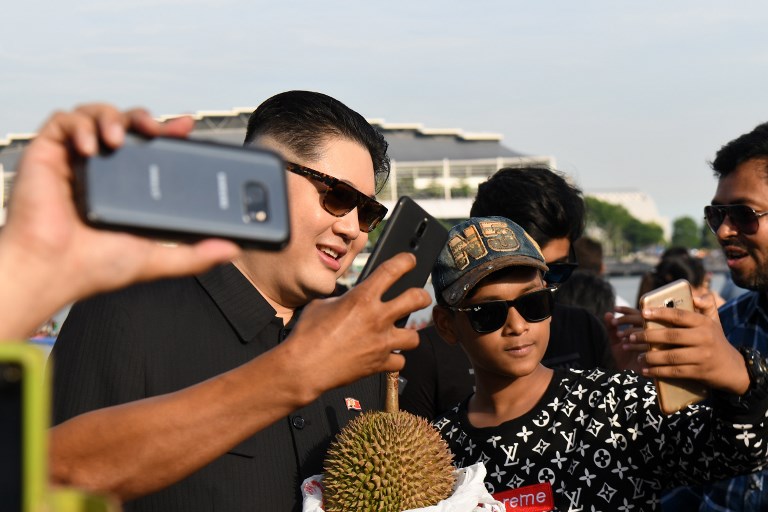 With the landmark US-North Korea summit moving along “very nicely” according to US President Donald Trump, Singaporeans were surprised to see Kim Jong Un gamely posing for pictures in the heart of Marina Bay yesterday, armed with a durian and a box of chicken rice.