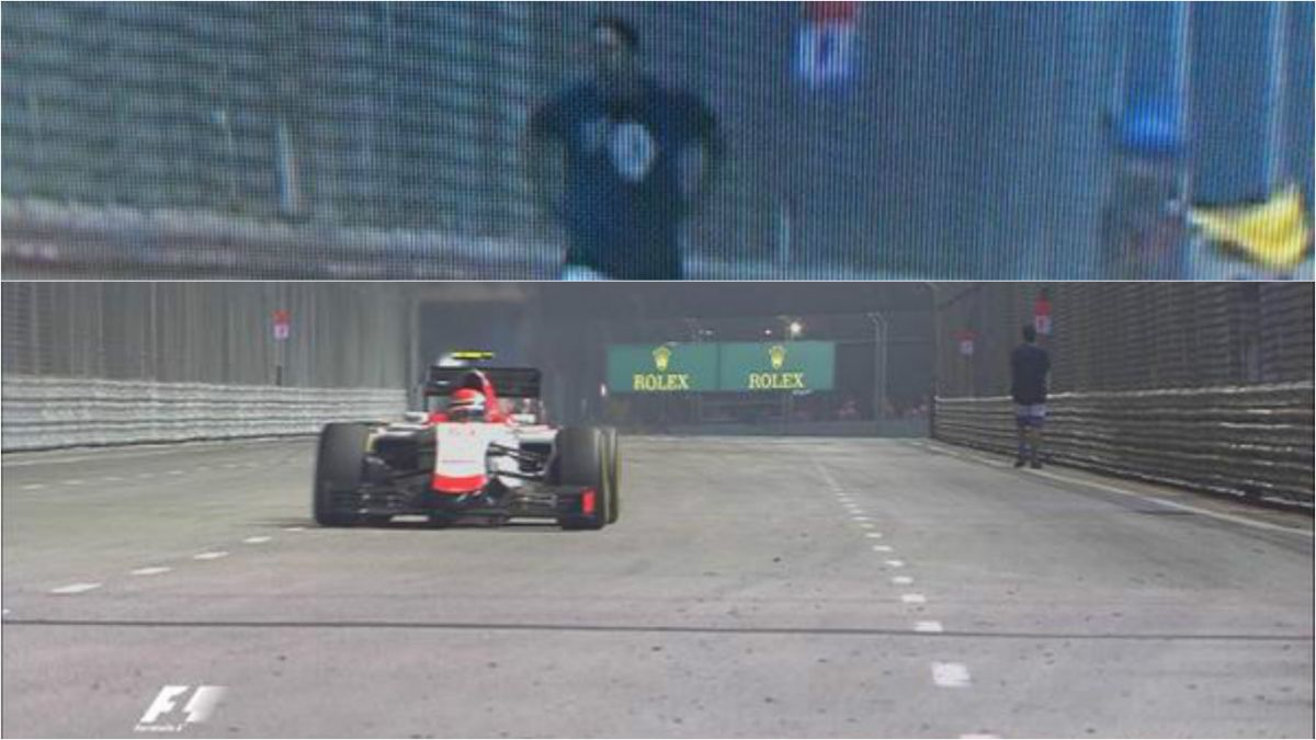 The Ferrari driver and eventual winner said he did a double-take when the man appeared shortly after the race’s halfway stage, an incident which prompted the safety car.