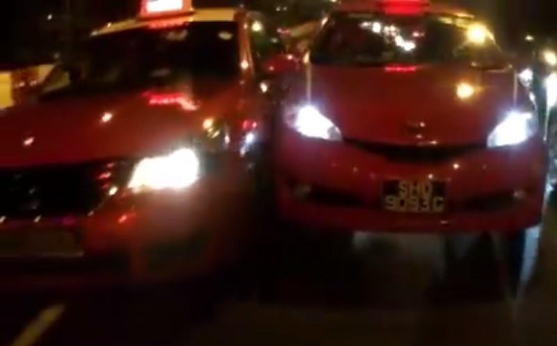 A small tiff between two taxi drivers lead to an even more frustrating evening for the mass of motorists behind them after both refused to give in to each other. Check out this video uploaded on the Roads.sg Facebook page, where two TransCab drivers want to be winners on the road — but ended up as two sore losers.