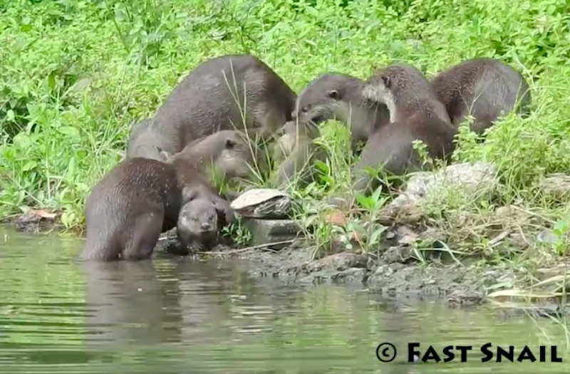 According to the otters’ regular watchdog Fast Snail, the family welcomed five new pups, roughly born on the last week of December last year. Being one-and-a-half months old, this was the first time the new critters have been spotted in public. Good timing too, considering the previous pups have grown to be pretty independent, according to previous Fast Snail videos, and may very well leave the herd soon.