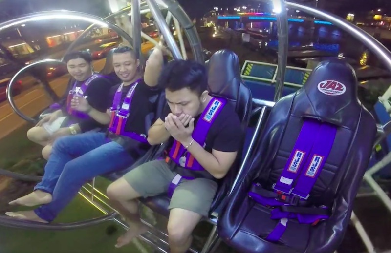 Thanks to Alfian Yan, a recent experience with his bros on the rides has gone viral. Going on both of the G-Max rides, everything looked fine at first as Alfian (in the blue jeans) and his bros Farhan (in the olive green shorts) and Shahid (in the white shorts) went through the reverse bungy first. Note how Farhan looks a little dazed at the end of it.