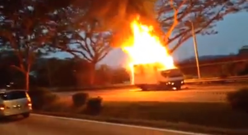 According to the Singapore Civil Defence Force (SCDF), the incident occurred around 7pm and a Light Fire Attack Vehicle and a fire engine was despatched to put out the blaze. Reportedly, no one was hurt during the incident. Traffic was brought to a standstill due to Traffic Police closing off the whole stretch of the road going towards Ang Mo Kio.