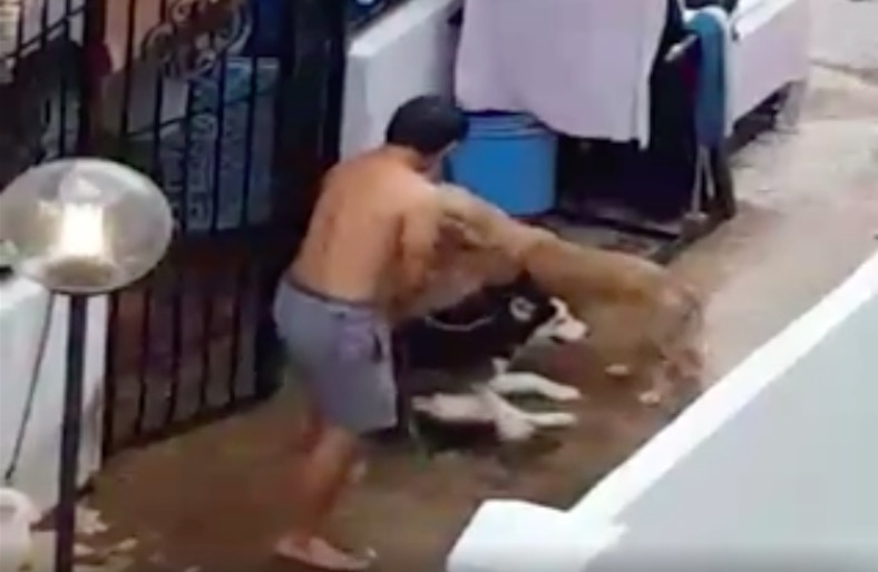 Facebook user Maimunah Mohadi witnessed a horrific scene unfold this Monday morning, in which a half-naked man was caught physically abusing a dog in his own backyard.