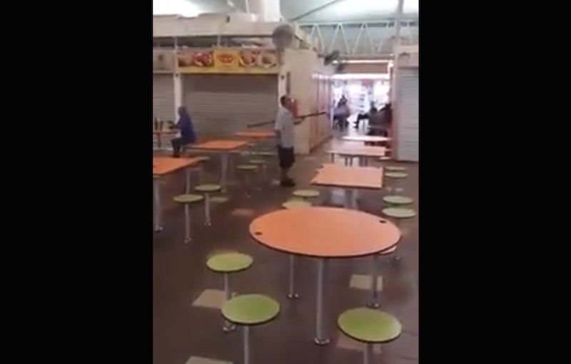 Recorded at Teban Gardens Food Centre and uploaded on the All Singapore Stuff Facebook page, this elderly man conducted his own personal military parade — complete with a makeshift ceremonial sword — and marched in between the rows of tables, shouting out commands and such.