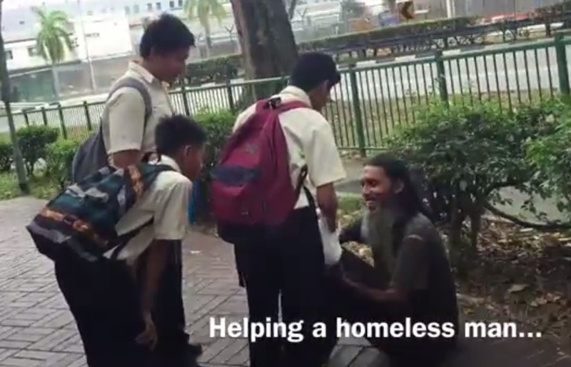 Recently, a group of selfless students from Marsiling Secondary School engaged in an act of charity by buying some fresh new clothes for a homeless man drifting around Old Woodlands Town Centre, even after they gave him some money for food earlier.