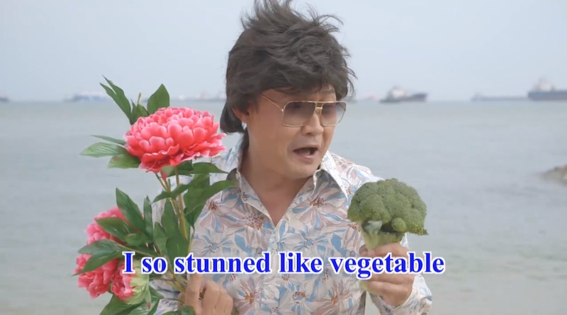Starring Golden Horse Award nominee Chen Tianwen (Ilo Ilo, Ah Boys to Men), the veteran actor belts out classic lines such as “you blossom like a flower / I so stunned like vegetable” and “please be the metal cable to my cable car” in typical ’80s karaoke video fashion — and ends up with an un-un-un-un-believable two minutes and 14 seconds of cringeworthy schtick.