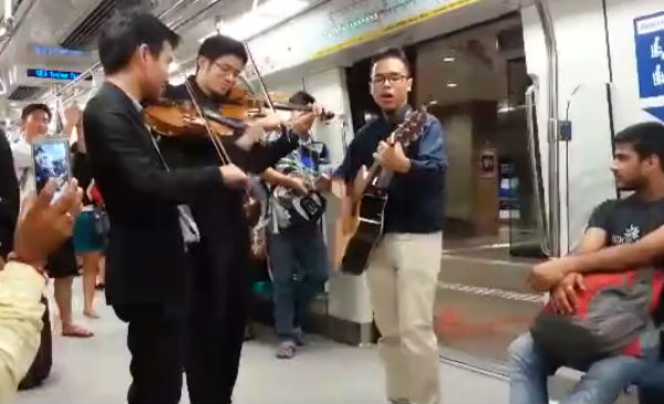 The most recent group to have jumped on the bandwagon (or cabin, in this case) is the Lorong Boys, who, armed with violins and a guitar, played a couple of covers for MRT passengers on Monday.