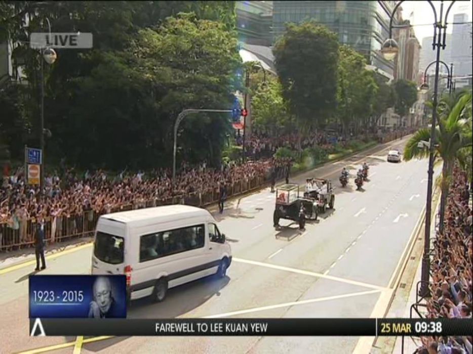 At 9am this morning, the gun carriage carrying the body of Singapore’s first Prime Minister Mr. Lee Kuan Yew left the beautiful landscaped grounds of the Istana for the Parliament House via an approximately 2km route.