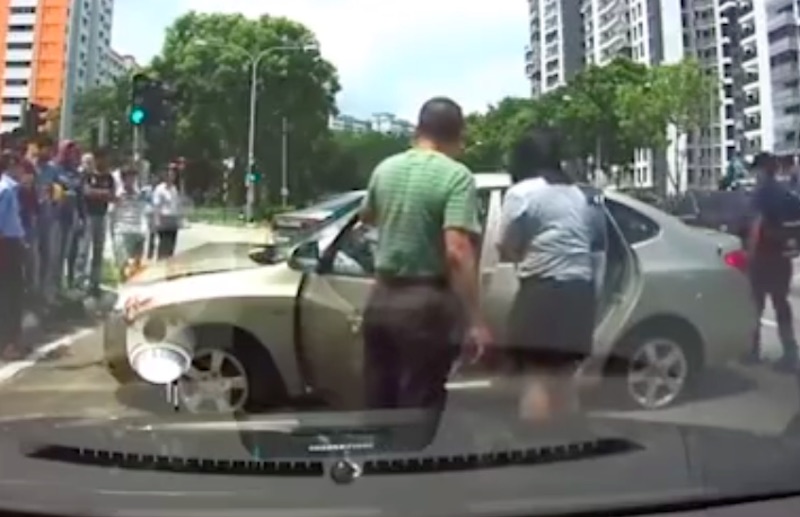 In the video uploaded on the Roads.sg Facebook page, you can see that passersby tried to render assistance to the elderly driver. Lee — who is medically trained — can be seen here getting ready an automated external defibrillator to revive the man trapped by the dashboard.