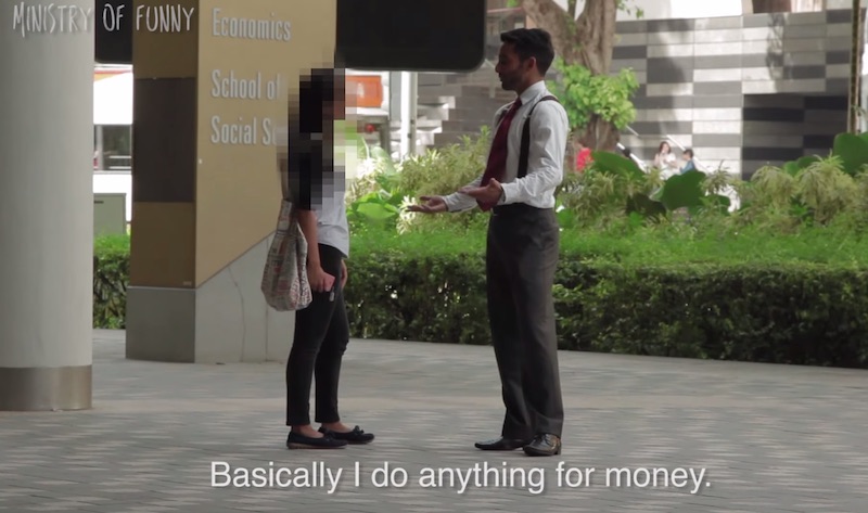 Continuing his popular series of throwing pickup lines on unsuspecting women, Ministry Of Funny TV‘s Haresh takes his game to the pavements of Singapore Management University with a new video that should be really relatable to business majors, marketing folks and… Jover Chew.