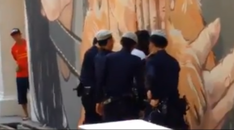 This video shows the police trailing him as he slow jogs out on the streets before arresting him right by one of Earnest Zacharevic’s murals on Victoria Street.