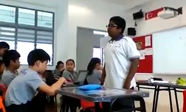 In a video posted by The Online Citizen (watch below), a secondary school student is seen taunting his teacher after the latter raised his voice at him — not unexpected considering he’d instructed the boy to return to his seat several times to no avail.