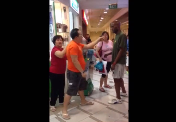 A video of two men fighting at the Compass Point shopping mall on Sunday has been going viral.