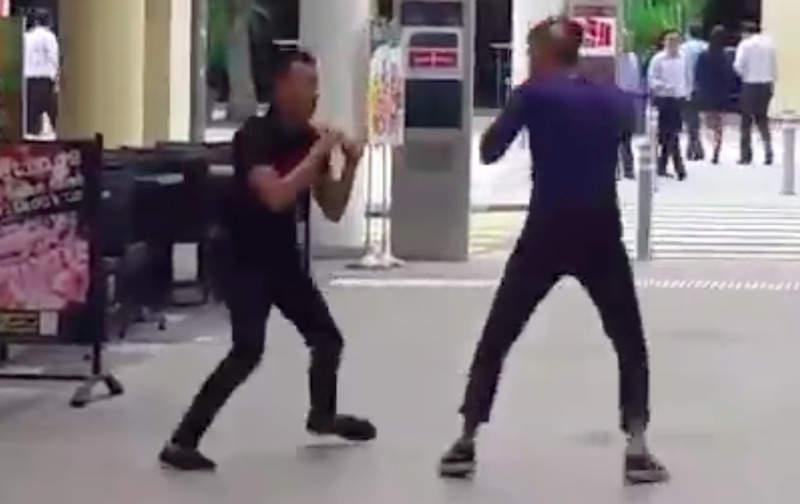 Stereotypes of Asians being totally adept at martial arts can be verily vanished with this footage of two dudes having a go at each other in public at China Square.