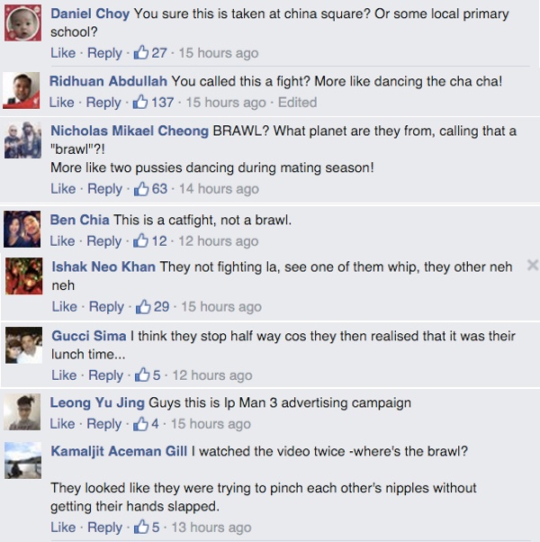 So toothless was their “brawl” yesterday afternoon that passersby simply didn’t even bother to stop the fight. Watch the unspectacular fistfight in the video clip below, first uploaded on the States Times Review Facebook page: