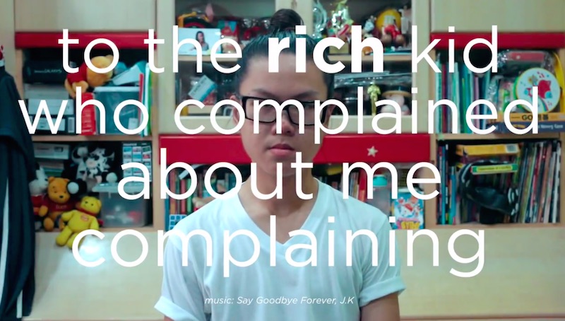 Young Lhu Wen Kai may not even be old enough to vote, but it seems that he’s got all the right notions of the Singapore’s pressing issues — especially in the matter of privilege.