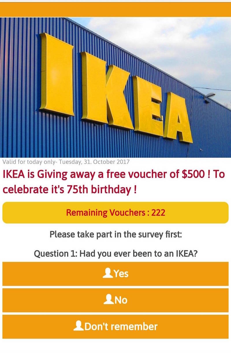 The latest “free voucher” scam to hit our shores has set its sights on Ikea Singapore customers. Offering S$500 vouchers for kiasu Singaporeans, the scam comes in the form of messages circulating online and on messaging apps.