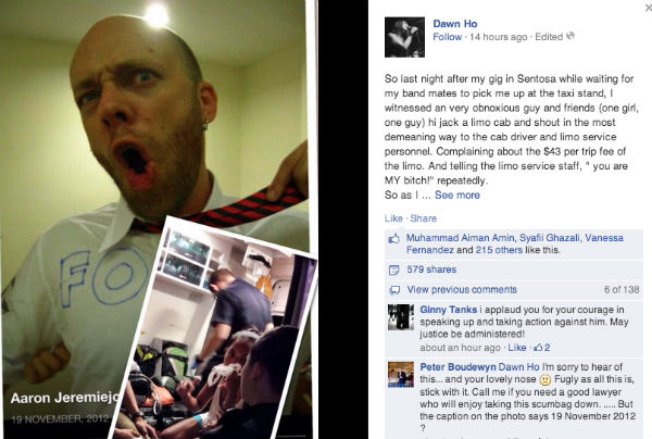 On March 10, local jazz singer Dawn Ho posted a status on her Facebook page, relaying her experience on Sentosa Island from the night before.
