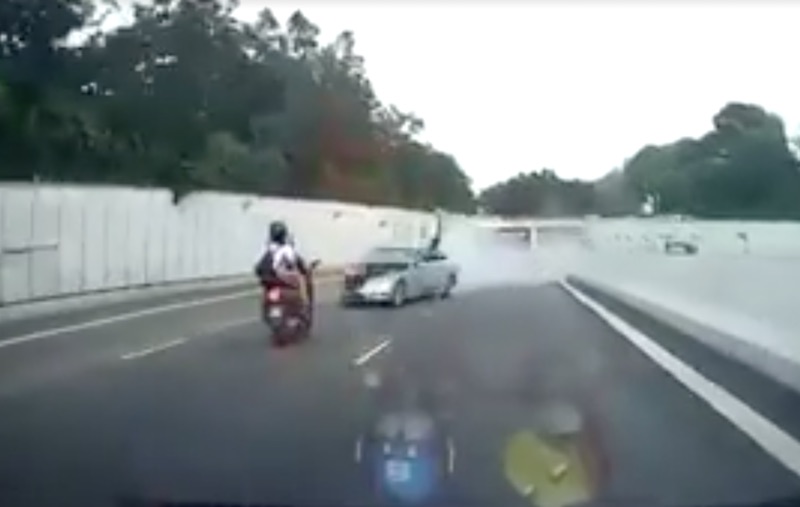 Involving four cars, a motorcycle and a bus, the horrific accident took place when the 53-year-old Mercedes driver made a U-turn and drove straight on against the busy traffic heading towards Tuas. The aftermath of the accident was disturbing enough as it is, but footage of the crash itself is even scarier. Watch the dashcam video by Patrick Tan below, as a motorcyclist and his pillion hurtled onto the expressway upon impact.