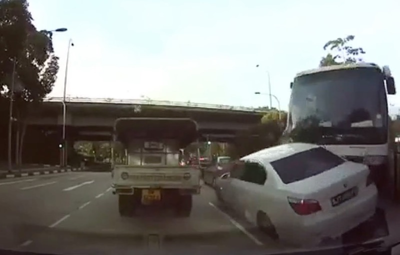 It was around 6pm when the accident transpired — dashcam footage was uploaded on the Beh Chia Lor Facebook page. The chilling clip shows how the runaway bus narrowly missed colliding into a double decker SBS bus as it ploughed across a three-lane road before it rammed through a fence on the divider.