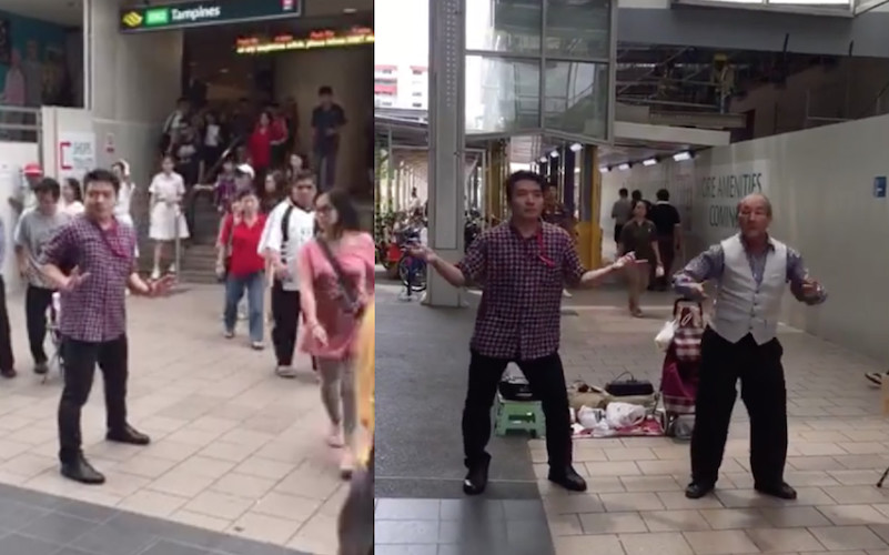 WATCH: Just a couple of uncles dancing to techno outside Tampines MRT station