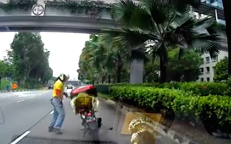 A motorcyclist showed great care for animals when he stopped his bike along a road near Admiralty MRT yesterday morning just to save an injured bird. The driver behind him, who helped by switching on his car’s hazard lights for oncoming traffic, managed to capture the incident on his dashcam. Footage showed the man calmly getting off his motorbike to carry the bird to the bushes, where it wouldn’t be crushed by other cars.