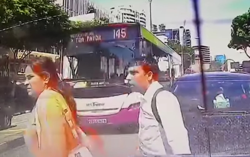A lady was knocked down by SBS bus service 145 last Saturday afternoon after she failed to look right at oncoming traffic along Balestier Road. She barely had time to react as she walked right into the path of the bus, with her male companion narrowly missed getting hit as well.
