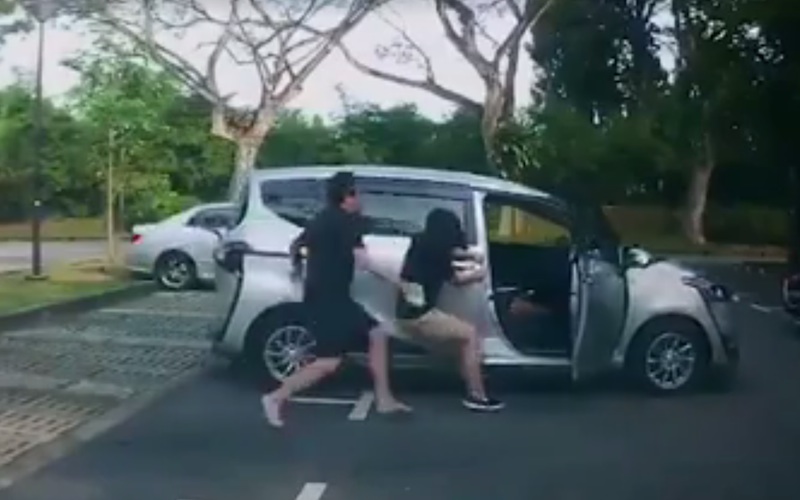 A woman and a man were at the boot of their car —which was parked in a rather empty space — when the car suddenly started rolling forward. Shocked into action, the first thing the panicked lady did was run to the door and give it her best Wonder Woman attempt. Yep, she actually tried to stop the vehicle from moving by pulling it back with her bare strength.