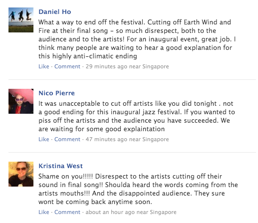 Moments later, more angry ticketholders made their feelings known, via the event’s official Facebook page: