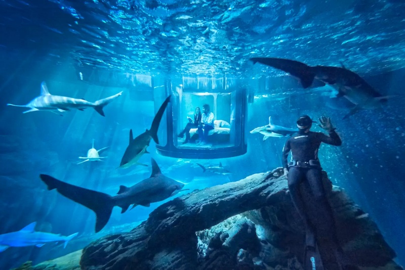 This one-of-a-kind sleepover encases you in a 360-degree transparent wall, submerged in a ten-meter deep aquarium swimming with 35 sharks. How awesome is that? Up close and personal will have new meaning when you find yourself staring into the eyes of the sharp-toothed creatures (unless you’re prone to bouts of sleepwalking — that might be a little dangerous, considering your surroundings).