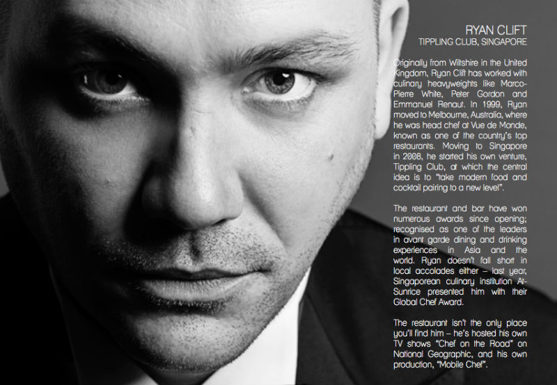Jaan’s Julien Royer, Tippling Club’s Ryan Clift, Tetsuya Wakuda of Waku Ghin and Frédéric Colin of Brasserie Gavroche join the likes of Hong Kong’s Mango Tsang and Hong Kong’s Paul Pairet in offering up the how-tos of some of their own signatures — immaculately dressed in Ermenegildo Zegna, no less.