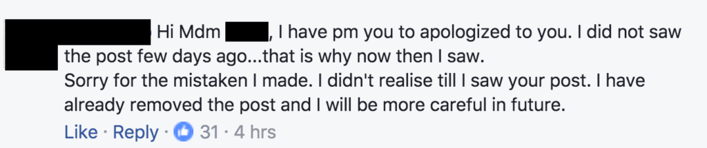 Within hours, the man who threw out the accusation in the first place reached out to the lady and offered her a sincere apology.