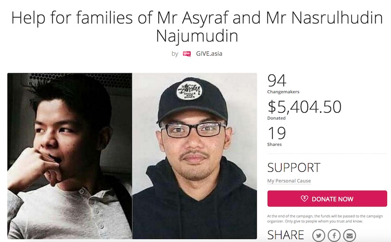 As the supremely heartbreaking story unfolded over the days, Shariff Rafi called on the help of his friend Aseem K Thakur — co-founder of crowdfunding site GIVE.asia — and initiated a public fundraising drive. Donations have been coming in swiftly too — as of writing, over $5,000 have been raised for the victims’ families so far. As much as $200 have even been donated by some kind souls, bless their hearts.