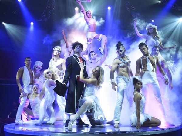 And that’s not all. In fact, that’s not even close to being all. Le Noir may be a travelling circus production, but aesthetically, it’s vaudeville. Each time they’re preparing for the next appearance they send the rest of the troupe out on stage in various states of fancy play and undress. Both men and women have evidently been given strict instructions to ham it up for the audience — shake and shimmy they do in their glistening white spandex and ripped fishnet stockings, while occasionally flicking faux fireflies at each other and popping red balloons with no reason at all. And let it be known we’re convinced they spend all their time in between training, showers and sleep at the gym — these are some unabashedly toned, practically Aryan human beings. Reminder: stageside tickets put you within enviable eyeball reach of every butt clench.