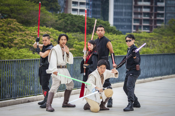 On a rooftop in Singapore, the glow of red and green lightsabers pierce the darkening sky as a Jedi and Sith fiercely duel. In a few deft moves, the Jedi overpowers the Sith and pins his conquest to the ground with his lightsaber. After a moment, the Jedi and Sith start laughing.