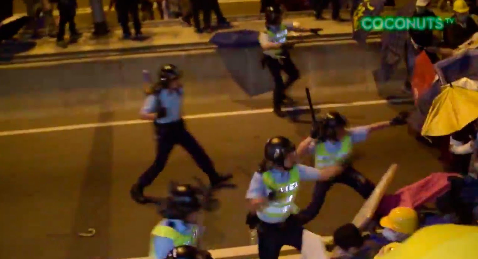 Hong Kong police were aggressive with their batons and pepper sprayed many, ultimately pushing the protesters back to their Admiralty camp.