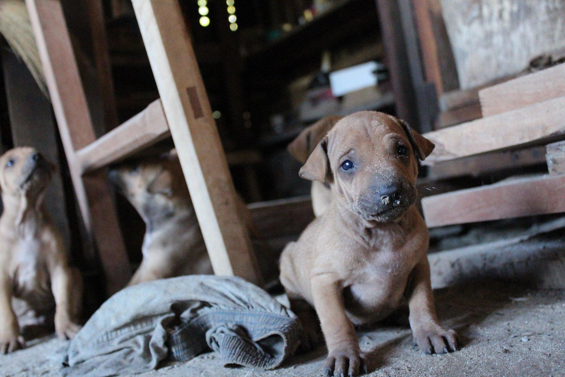 These puppies, who just want a piece of that trash.