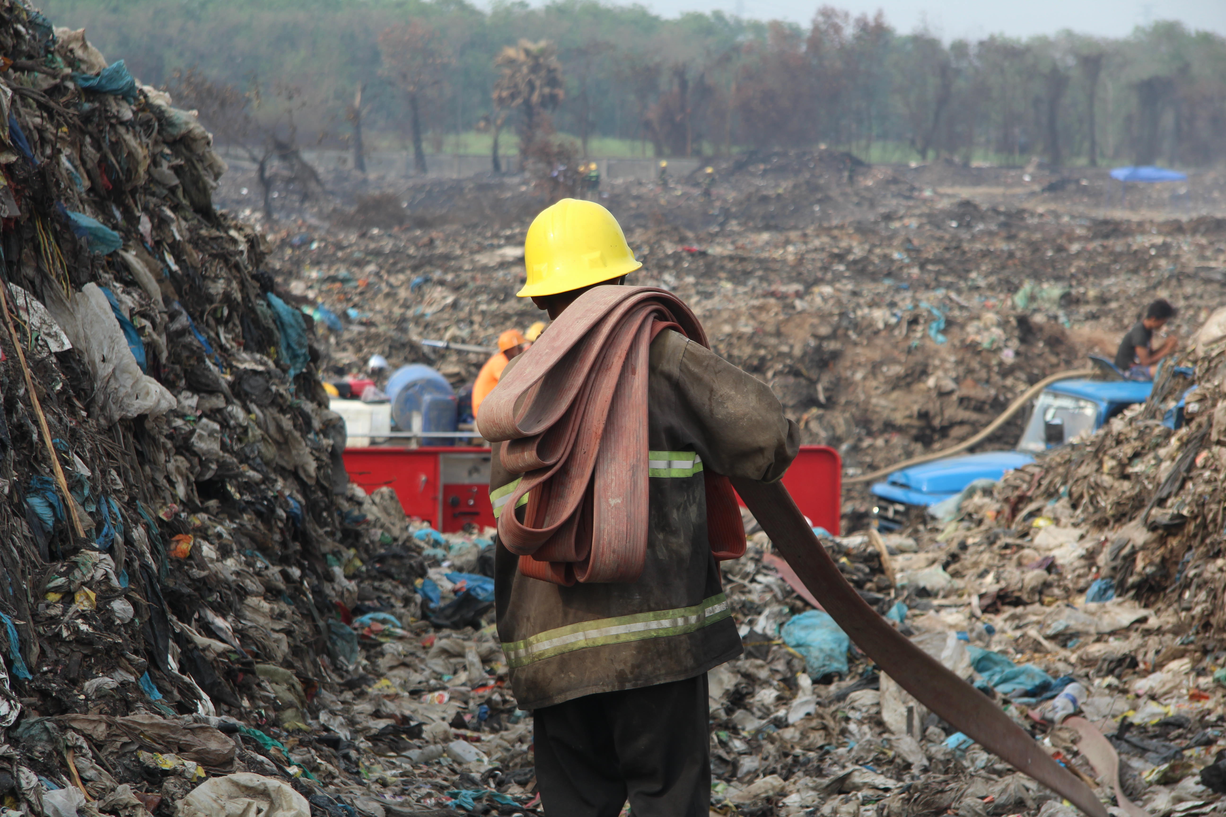 Hundreds of firefighters packed up their hoses and left the still-smoking Htein Bin landfill on May 3, leaving a few men behind to make sure no flames resurfaced from the depths. That day, Myanmar state media declared “Mission Accomplished” in the fight against the flames, praising firefighters’ two-week effort to stem the flow of poisonous smoke and gas from the mounds of burning garbage into the city’s air, which caused more than 70 people to be hospitalized.