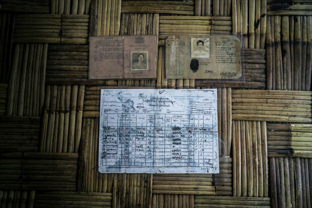 National Registration Cards for the grandparents of one Rohingya family that is planning to flee to Malaysia this year. Many Rohingya cherish these documents since they are often the only official documents that can prove citizenship. Photo: Alexander Hotz / Coconuts Yangon