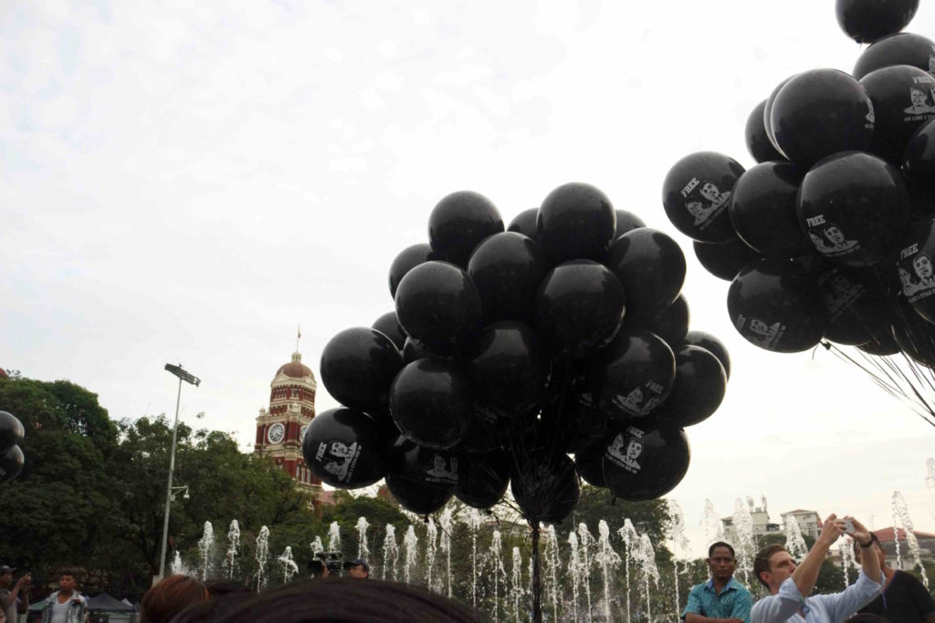 In a symbolic gesture of hope and freedom, protestors released the black balloons into the sky, clapping as they wished for the release of Wa Lone and Kyaw Soe Oo.