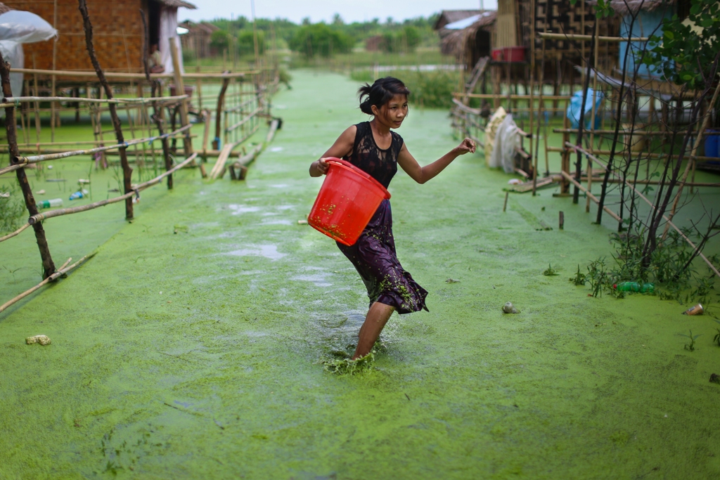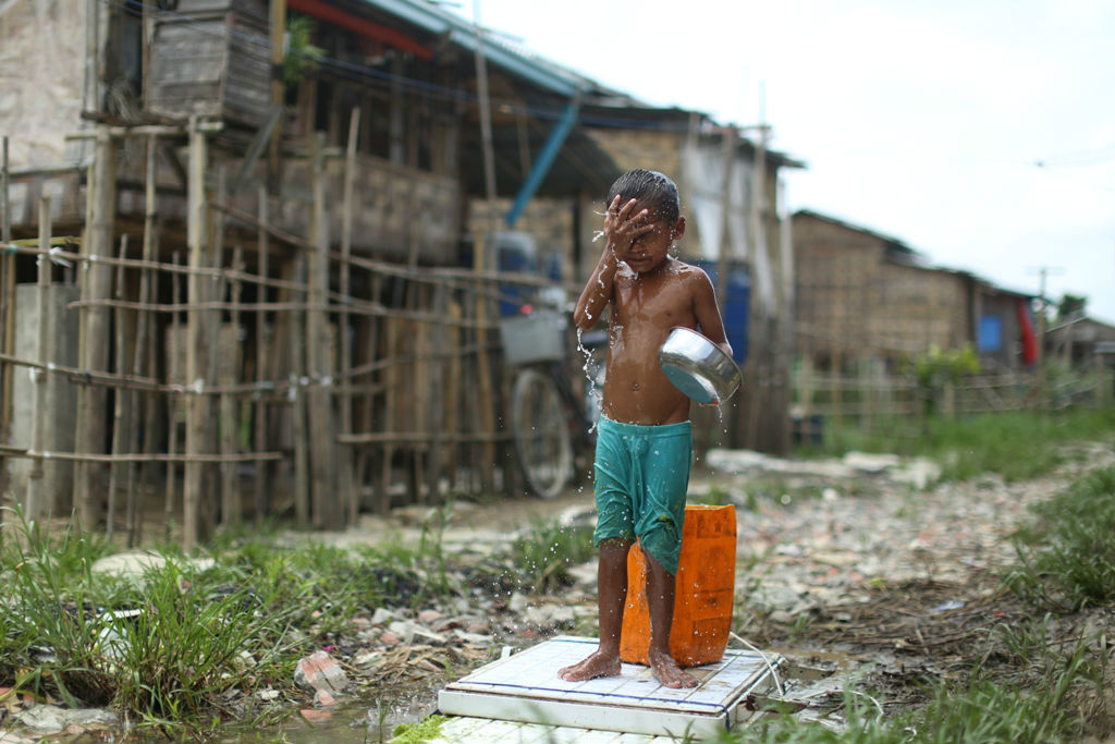 A young boy washes his face in a squatter settlement in Hlaing Thar Yar township in Yangon which sees regular flooding during monsoon. Photo / Hkun Lat / Myanmar Now