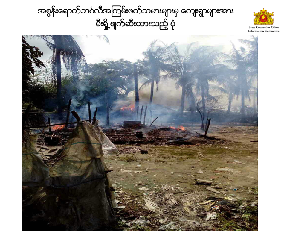 10:51am: The Information Committee accuses “extremist terrorists” of torching their own homes in an effort to destroy the entirety of Maungdaw town.