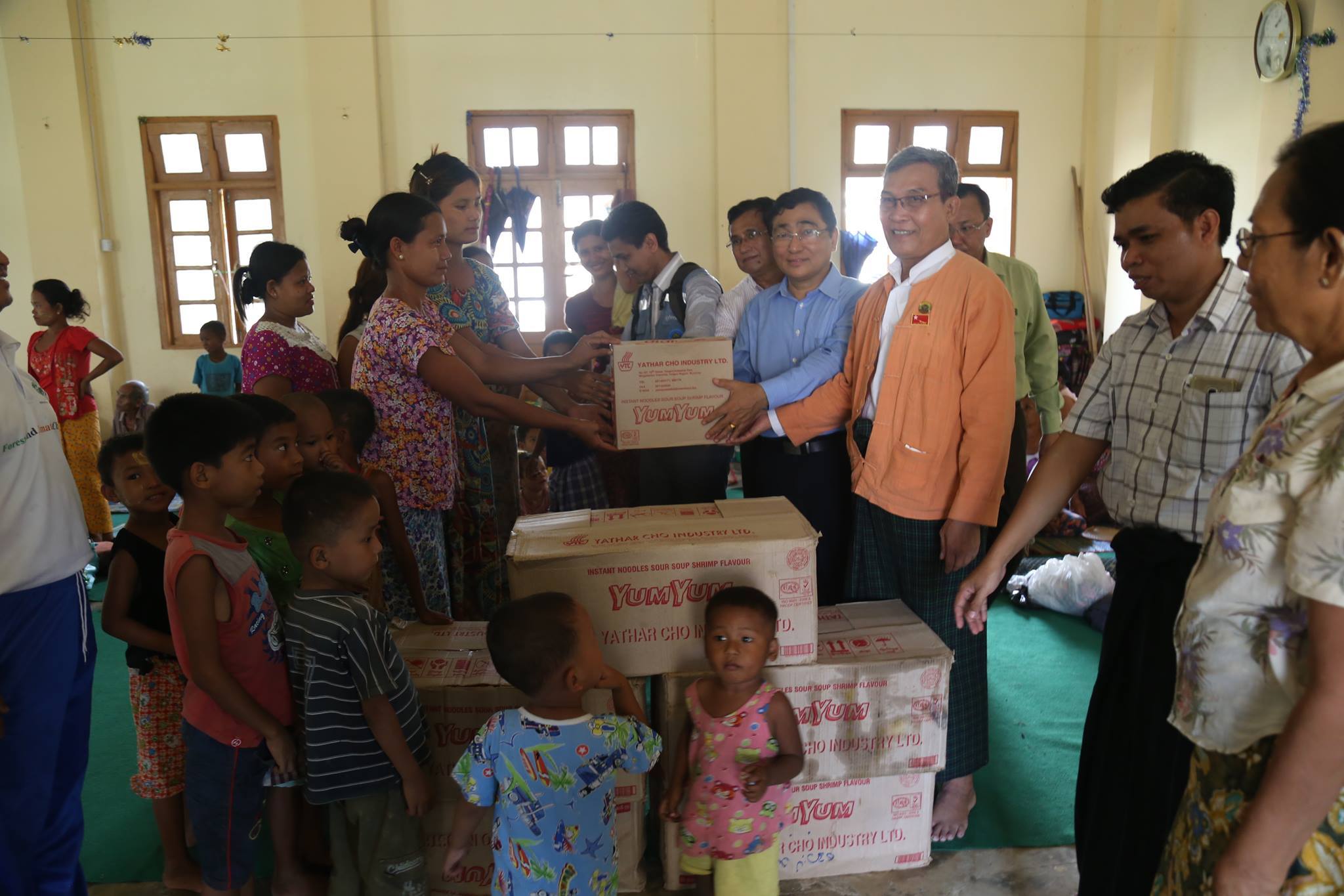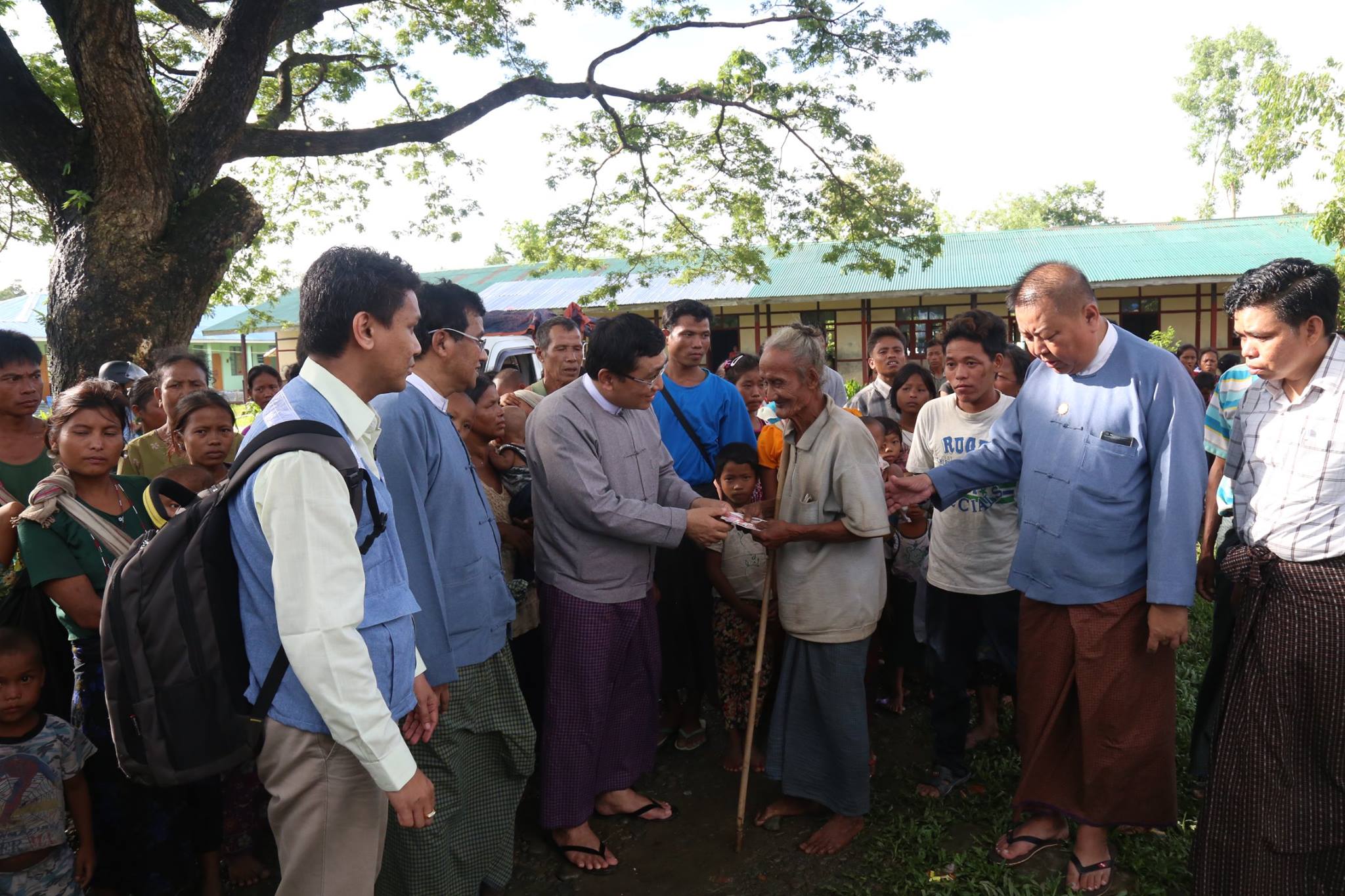8:39pm: The Information Committee shares photos of Minister for Social Welfare, Relief, and Resettlement Win Myat Aye delivering aid to “ethnic” people in Sittwe.
