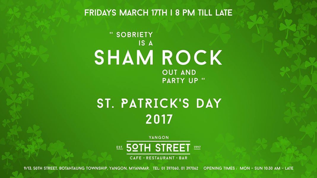 50th Street Cafe Bar Restaurant Church Factory wants you to celebrate St. Patrick’s Day with them tonight from 8pm to 1am. As always, this will be a convenient opportunity to sanctify a normal day with alcohol.