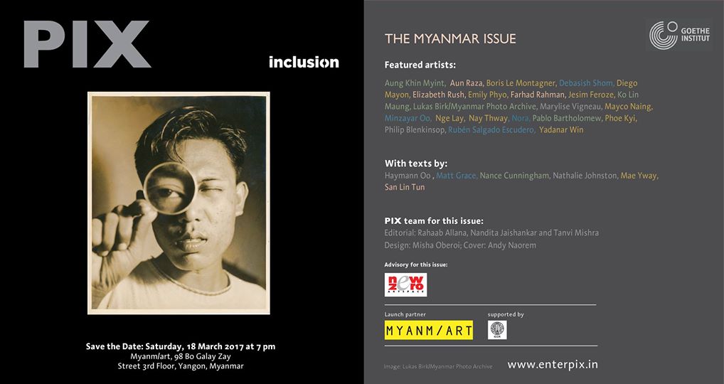 The Goethe-Institut Myanmar is hosting the launch of a new issue of PIX — a Delhi-based initiative to “investigate, engage and archive broad contemporary photography and writing practices in India and South Asia.”
