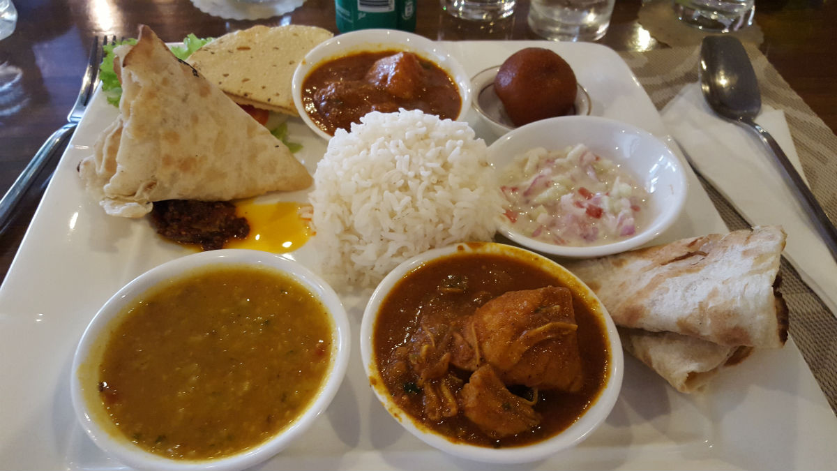 The first set is pictured above and has dhal, chicken curry, mutton vindaloo, naan (or chapati) plus a few smaller garnishes.