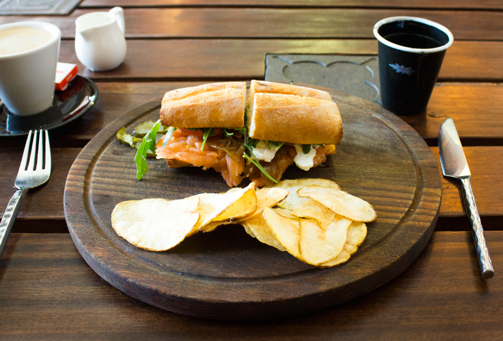 If you’re a baguette purist, this is not the sandwich for you, but for me, who doesn’t care, it is delicious. The bread has a thin crust but is mostly soft and doesn’t tear up your mouth. The salmon is plentiful and thick-cut, which is necessary, considering the high price point. The cheese is sliced into soft, creamy blocks. The salmon itself has just the right amount of brine and actually tastes like salmon. A rogue element is the thin layer of mayo, which sounds bad, but actually adds a slight tang and sweetness. Altogether, it’s a creamy, melt-in-your-mouth experience, best had on their lovely velvet couches over decent Americanos.
