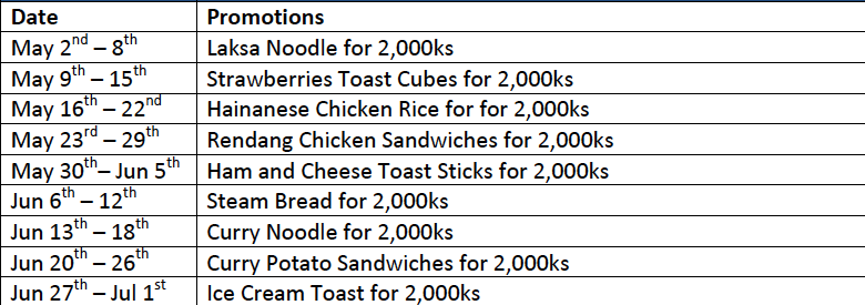 They also sent over this schedule of promotions for cheap snacks for the next couple of weeks.